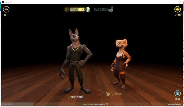4、随后让好友在大厅列表中找到我们的房间,就可以加入,也可以邀请好友加入房间,然后点击【开始】开启对战;