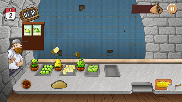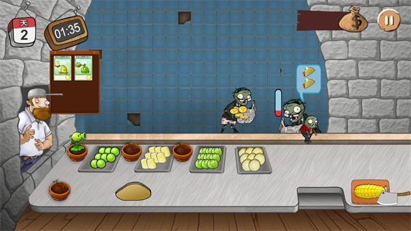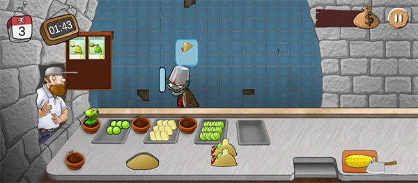 3、准备好一切的材料,这样才能应对后面的所有僵尸顾客,有的顾客胃口很大,需要两个卷饼,需要及时的交给对方;