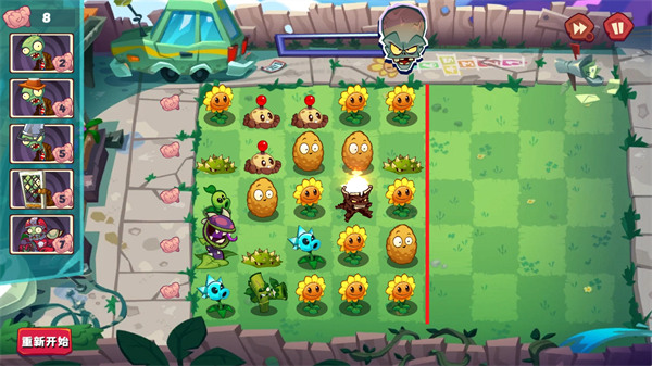 你可以选择成为僵尸,使用大脑召唤僵尸,就可以攻击植物阵营,植物阵营不算强大;