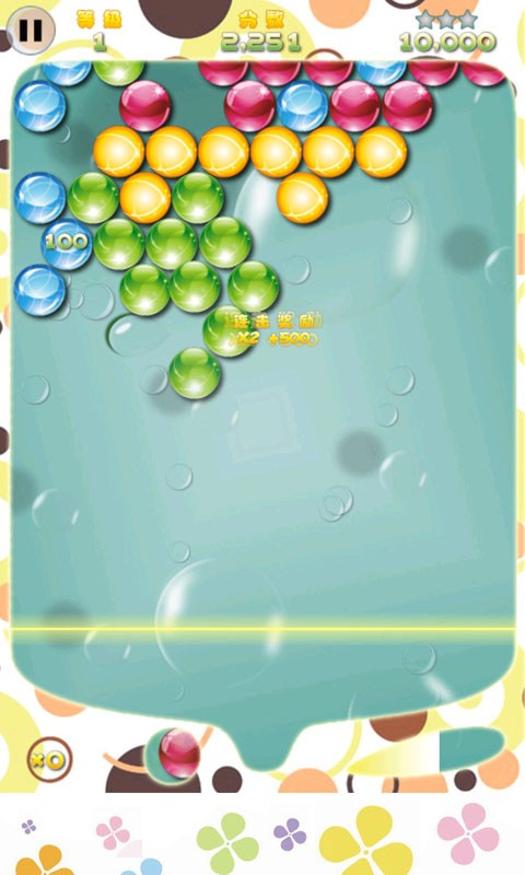 第一个,与其他泡泡龙有本质区别的地方,就是海底场景所带来的特殊优惠了,作为海底,自然是有浮力的,所以,当泡泡快要接近死亡线的时候,千万别心慌,每一次消除泡泡,所有的泡泡都会因为浮力向上回缩一点点,真的只是一点点,可是,无数个一点点加起来,那就是一大截了!这时候,别想着赚分数了,能消除的统统消除掉吧!