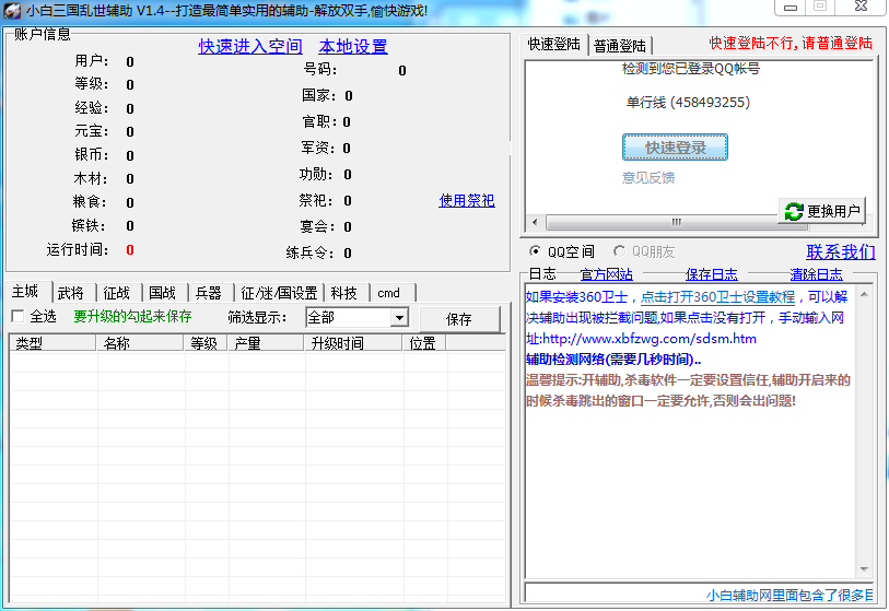 小白三国乱世辅助是腾讯页游三国乱世的免费辅助工具,可以帮助玩家完成自动处理事件、自动武将征战、自动升级科技等操作,可以帮你解放双手让你的游戏之旅更加轻松。
