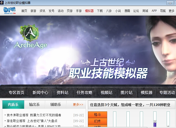 上古世纪职业模拟器 任意选择3个天赋,组成唯一职业,一共120种职业 .各种控制技能相当强大,攻击连续性表现优秀,有刺客所需的隐身和突击技能,单挑、群攻战斗力非常出色。