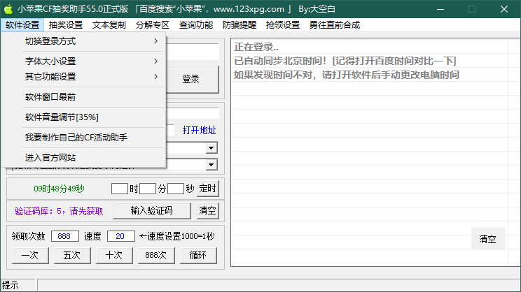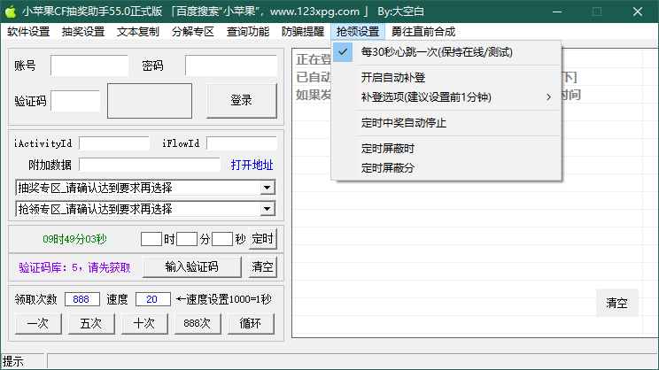 小苹果cf抽奖助手官方版为你提供了穿越火线抽奖活动的抽奖工具,你可以使用这款软件更加方便的来进行抽奖。登录游戏账号密码,选择大区就可以开始抽奖了。建议在抽奖开始钱3个小时登录。欢迎下载!