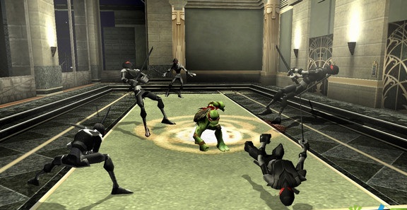 扮演所有4名龟战士:达芬奇、拉斐尔、多纳泰罗和米开朗基罗都是可以操控的,每个人都具备各自独特的移动,武器和战斗技能,例如米开朗基罗的双节棍脸击技和拉斐尔的叉掷技。