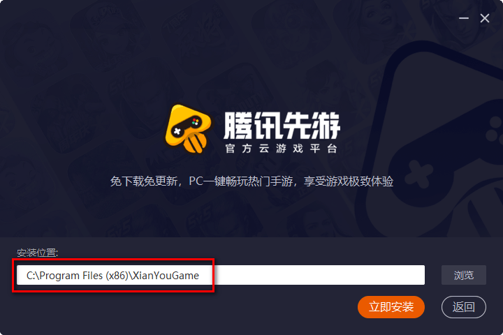 4、按照下图所示“D:XianYouGame”路径修改也可以。修改完成之后点击“立即安装”