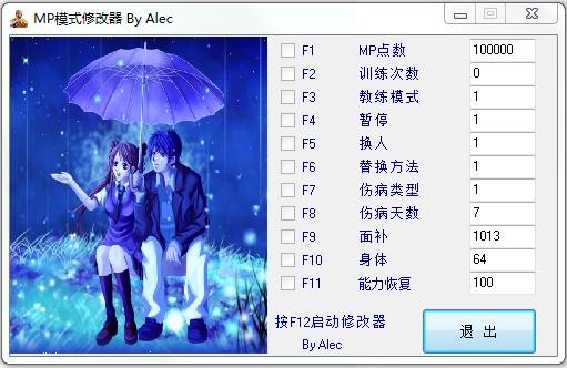 本修改器的功能包括MP点数、训练点数的修改,教练设置,以及伤病、化学反应引起的能力下降的修复,以及使用别人的面部的功能。