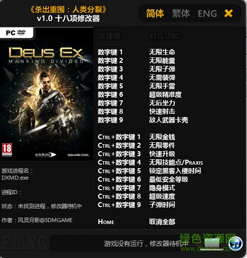 杀出重围人类分裂修改器是针对该游戏玩家提供的一款属性修改器,通过该功能能够修改游戏中的无限生命、无限子弹、无限装弹等十七项属性,并且支持简体、繁体中文、英语三种语言,非常不错,需要的朋友欢迎来下载!