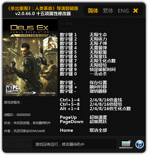 杀出重围3人类革命导演剪辑版修改器是同名游戏《杀出重围3:人类革命之导演剪辑版》的辅助工具。软件功能强大,为玩家提供无限生命、无限体力、无限金钱、无限经验、无限子弹等功能。通过修改器,还可以一击秒杀敌人,轻松通关游戏。