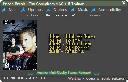 越狱之阴谋五项修改器是专为游戏《越狱之阴谋》打造的辅助修改工具,支持修改金钱、生命,支持隐形模式;还提供易杀敌功能,杀敌更轻松,轻松通关游戏。赶快下载体验吧!