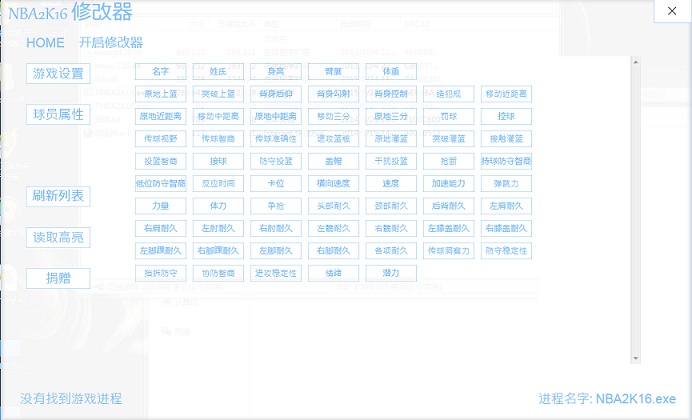 NBA2K16多功能人物属性修改器是为2k16玩家打造的人物属性修改器,如果你嫌自己角色的属性值偏低,就可以使用这个2k16修改器,包括耐久、力量、射术各个方面的属性都可以有效提升,通过本修改器可对人物属性进行修改,这样将大大增加人物战斗力,给你更加刺激的游戏体验。欢迎下载使用。