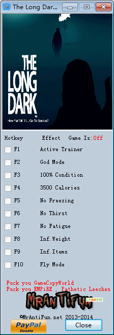 漫漫长夜修改器是一款同名冒险游戏慢慢长夜中的辅助工具,这款工具可以将游戏中人物的疲劳值、热量等进行调整。漫漫长夜是一款第三人称恐怖风格的冒险游戏,游戏中阴森的画面,低沉的音乐,突发的事件都很好的衬托出其恐怖的气氛,本作也将带领大家领略极致的恐怖体验。玩家只需在游戏中点击对应的热键就可以将人物的属性改变,使人物可以更轻松地完成任务。需要的朋友可以下载收藏!